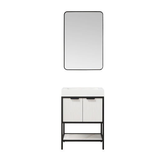 Vinnova Marcilla 24" Single Sink Bath Vanity In White With One-Piece Composite Stone Sink Top And Mirror