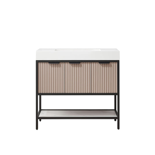 Vinnova Marcilla 36" Single Sink Bath Vanity In Almond Coffee With One-Piece Composite Stone Sink Top