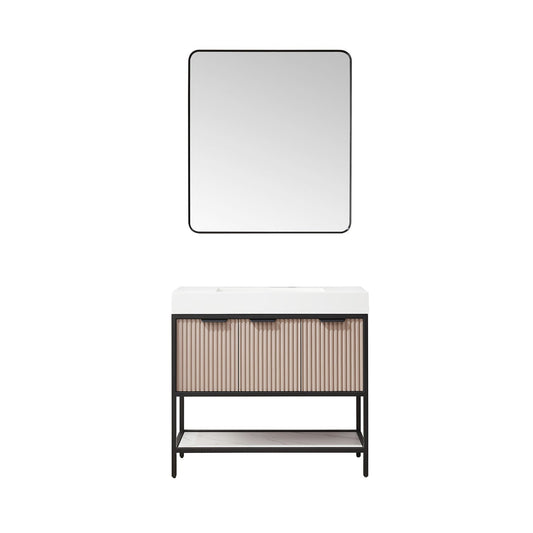 Vinnova Marcilla 36" Single Sink Bath Vanity In Almond Coffee With One-Piece Composite Stone Sink Top And Mirror