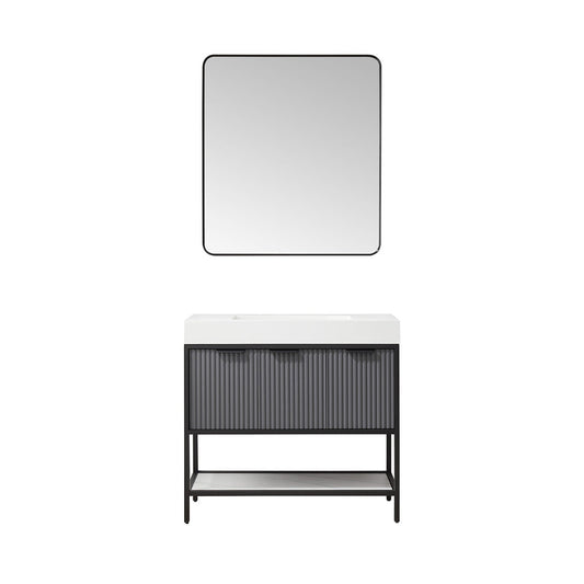Vinnova Marcilla 36" Single Sink Bath Vanity In Grey With One-Piece Composite Stone Sink Top And Mirror