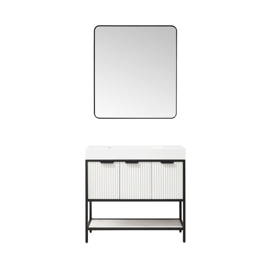 Vinnova Marcilla 36" Single Sink Bath Vanity In White With One-Piece Composite Stone Sink Top And Mirror