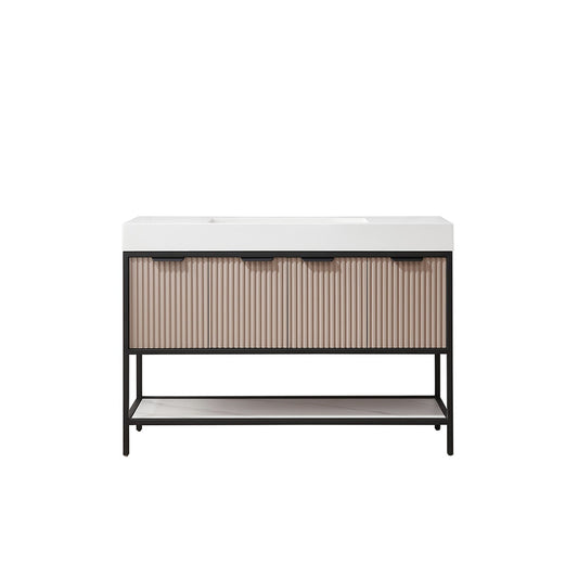 Vinnova Marcilla 48" Single Sink Bath Vanity In Almond Coffee With One-Piece Composite Stone Sink Top