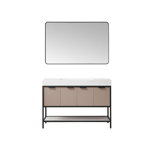 Vinnova Marcilla 48" Single Sink Bath Vanity In Almond Coffee With One-Piece Composite Stone Sink Top And Mirror