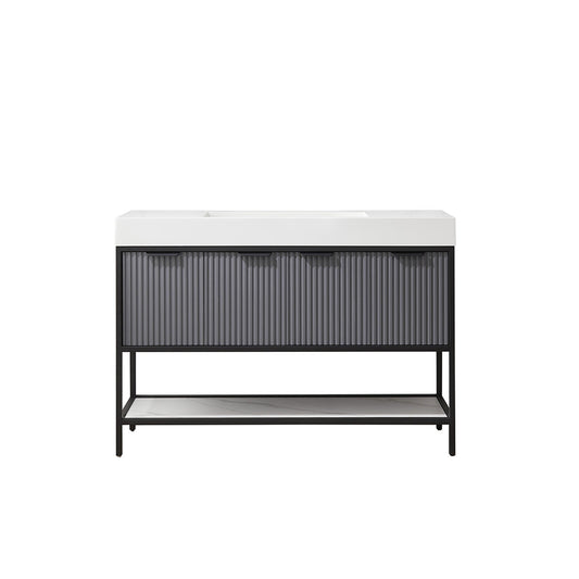 Vinnova Marcilla 48" Single Sink Bath Vanity In Grey With One-Piece Composite Stone Sink Top