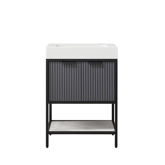 Vinnova Marcilla 24" Single Sink Bath Vanity In Grey With One-Piece Composite Stone Sink Top