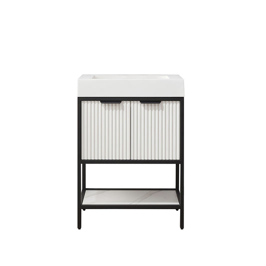 Vinnova Marcilla 24" Single Sink Bath Vanity In White With One-Piece Composite Stone Sink Top