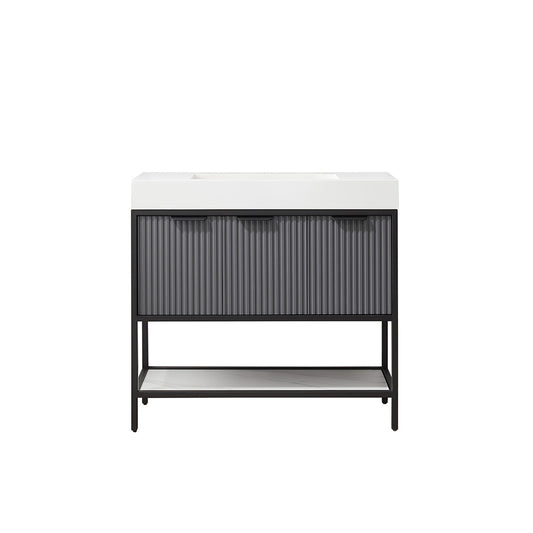 Vinnova Marcilla 36" Single Sink Bath Vanity In Grey With One-Piece Composite Stone Sink Top