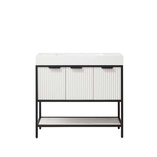 Vinnova Marcilla 36" Single Sink Bath Vanity In White With One-Piece Composite Stone Sink Top