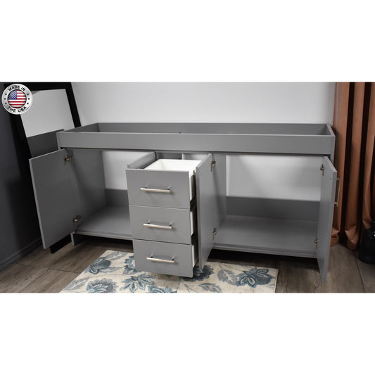 Volpa USA Capri 72" x 22" Gray Modern Bathroom Vanity For Double Sinks With Brushed Nickel Edge Handles