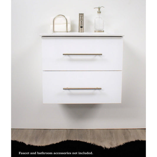 Volpa USA Napa 30" Glossy White Wall-Mounted Floating Modern Bathroom Vanity With Integrated Ceramic Top and Satin Nickel Round Handles