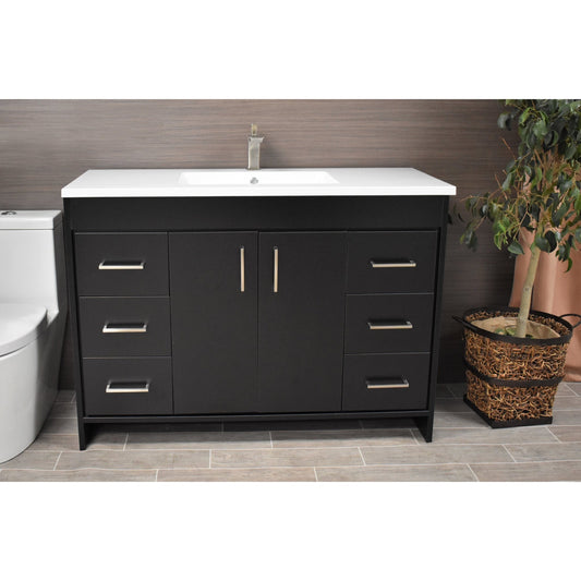 Volpa USA Rio 48" Black Freestanding Modern Bathroom Vanity With Integrated Acrylic Top and Brushed Nickel Handles