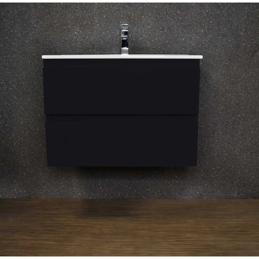 Volpa USA Salt 30" x 18" Glossy Black Wall-Mounted Floating Bathroom Vanity With Drawers, Integrated Porcelain Ceramic Top and Integrated Ceramic Sink