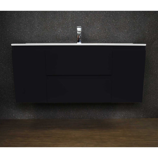 Volpa USA Salt 48" x 18" Glossy Black Wall-Mounted Floating Bathroom Vanity With Drawers, Integrated Porcelain Ceramic Top and Integrated Ceramic Sink