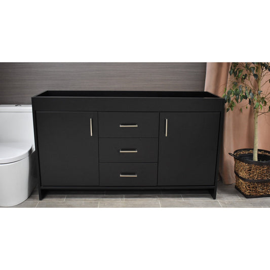 Volpa USA Rio 60" Black Freestanding Modern Bathroom Vanity For Double Sinks With Brushed Nickel Handles