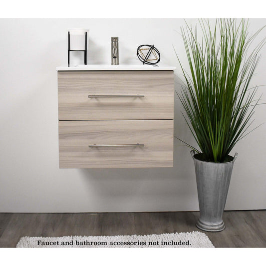 Volpa USA Napa 24" Ash Grey Wall-Mounted Floating Modern Bathroom Vanity With Integrated Ceramic Top and Satin Nickel Round Handles