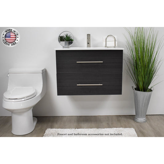 Volpa USA Napa 24" Black Ash Wall-Mounted Floating Modern Bathroom Vanity With Integrated Ceramic Top and Satin Nickel Round Handles