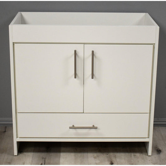 Volpa USA Pacific 36" Soft White Freestanding Modern Bathroom Vanity With Brushed Nickel Round Handles Cabinet Only