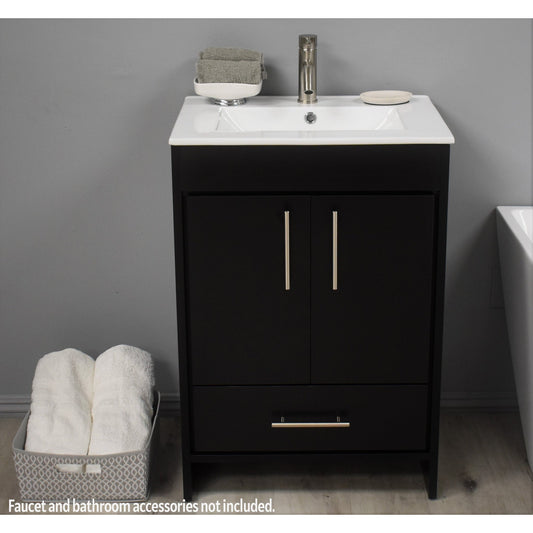 Volpa USA Pacific 24" Black Freestanding Modern Bathroom Vanity With Integrated Ceramic Top and Brushed Nickel Round Handles