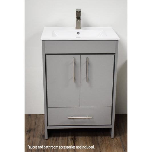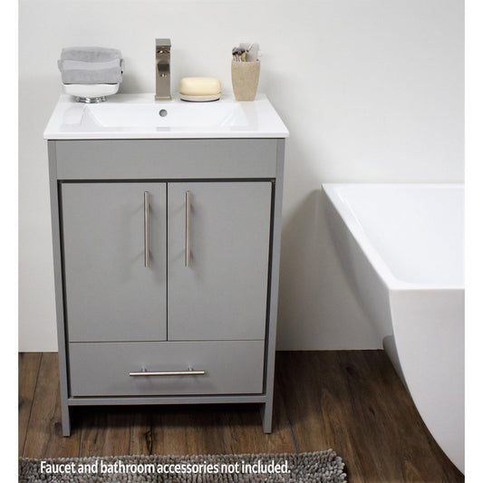 Volpa USA Pacific 24" Gray Freestanding Modern Bathroom Vanity With Integrated Ceramic Top and Brushed Nickel Round Handles
