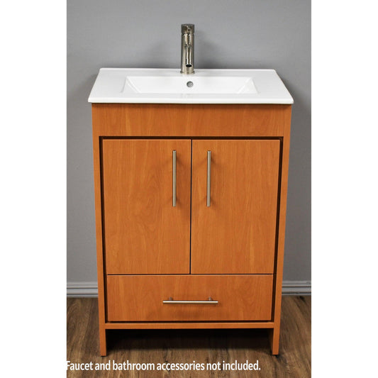 Volpa USA Pacific 24" Honey Maple Freestanding Modern Bathroom Vanity With Integrated Ceramic Top and Brushed Nickel Round Handles