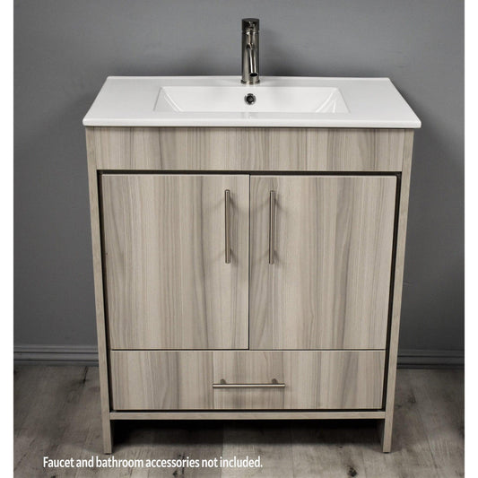 Volpa USA Pacific 30" Ash Gray Freestanding Modern Bathroom Vanity With Integrated Ceramic Top and Brushed Nickel Round Handles