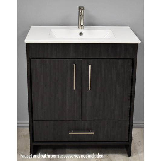 Volpa USA Pacific 30" Black Ash Freestanding Modern Bathroom Vanity With Integrated Ceramic Top and Brushed Nickel Round Handles
