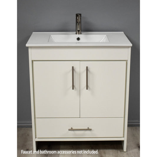 Volpa USA Pacific 30" Soft White Freestanding Modern Bathroom Vanity With Integrated Ceramic Top and Brushed Nickel Round Handles