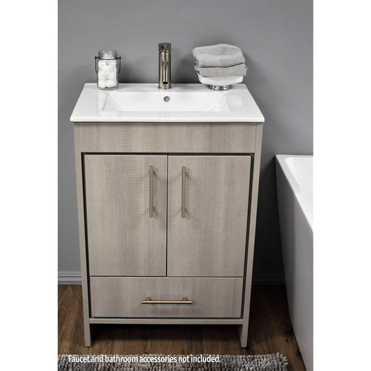 Volpa USA Pacific 24" Weathered Gray Freestanding Modern Bathroom Vanity With Integrated Ceramic Top and Brushed Nickel Round Handles
