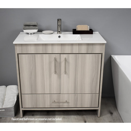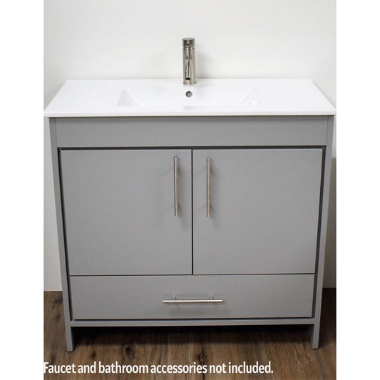 Volpa USA Pacific 36" Ash Gray Freestanding Modern Bathroom Vanity With Integrated Ceramic Top and Brushed Nickel Round Handles
