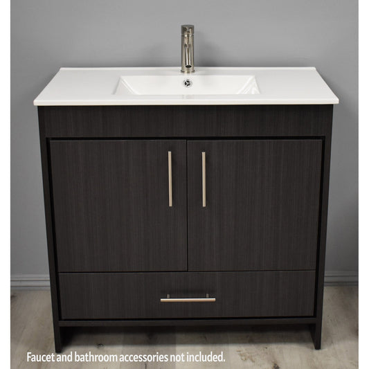 Volpa USA Pacific 36" Black Ash Freestanding Modern Bathroom Vanity With Integrated Ceramic Top and Brushed Nickel Round Handles