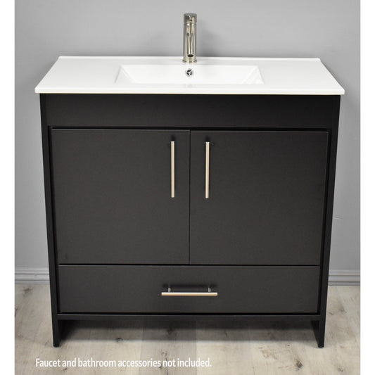 Volpa USA Pacific 36" Black Freestanding Modern Bathroom Vanity With Integrated Ceramic Top and Brushed Nickel Round Handles
