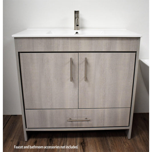 Volpa USA Pacific 36" Weathered Gray Freestanding Modern Bathroom Vanity With Integrated Ceramic Top and Brushed Nickel Round Handles