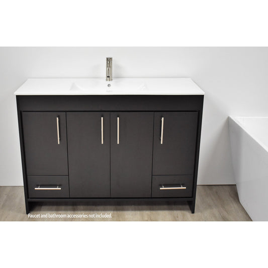 Volpa USA Pacific 48" Black Freestanding Modern Bathroom Vanity With Integrated Ceramic Top and Brushed Nickel Round Handles