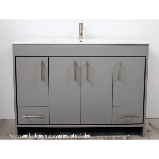 Volpa USA Pacific 48" Gray Freestanding Modern Bathroom Vanity With Integrated Ceramic Top and Brushed Nickel Round Handles