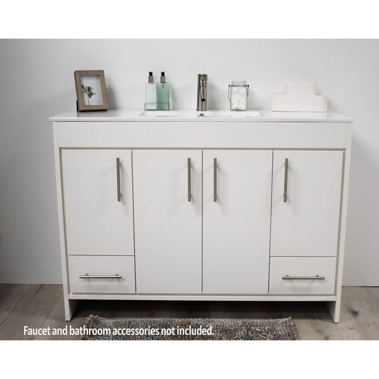 Volpa USA Pacific 48" White Freestanding Modern Bathroom Vanity With Integrated Ceramic Top and Brushed Nickel Round Handles