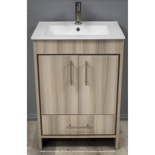 Volpa USA Pacific 24” Ash Gray Freestanding Modern Bathroom Vanity With Integrated Ceramic Top and Brushed Nickel Round Handles