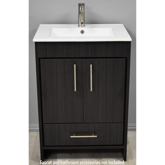 Volpa USA Pacific 24" Black Ash Freestanding Modern Bathroom Vanity With Integrated Ceramic Top and Brushed Nickel Round Handles