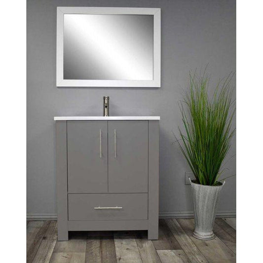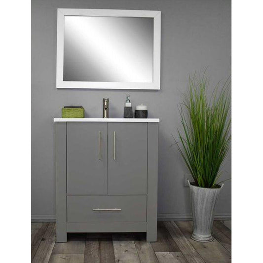 Volpa USA Boston 30" x 20" Gray Modern Freestanding Bathroom Vanity With Acrylic Top, Integrated Acrylic Sink And Brushed Nickel Handles