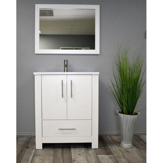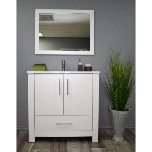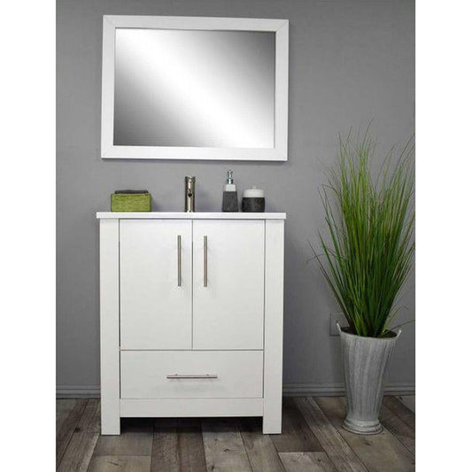 Volpa USA Boston 30" x 20" White Modern Freestanding Bathroom Vanity With Acrylic Top, Integrated Acrylic Sink And Brushed Nickel Handles