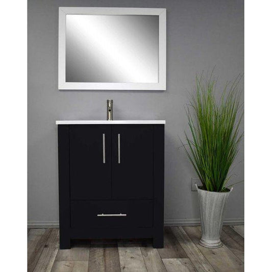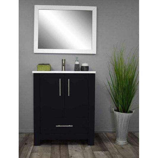 Volpa USA Boston 30" x 20" Black Modern Freestanding Bathroom Vanity With Acrylic Top, Integrated Acrylic Sink And Brushed Nickel Handles