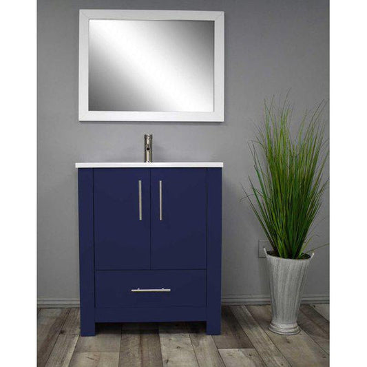 Volpa USA Boston 30" x 20" Navy Modern Freestanding Bathroom Vanity With Acrylic Top, Integrated Acrylic Sink And Brushed Nickel Handles