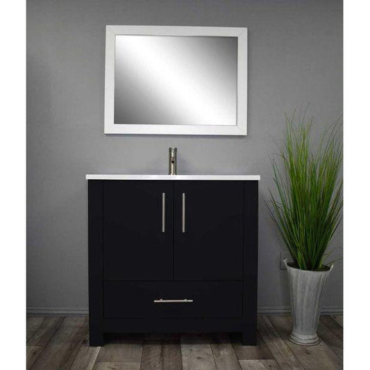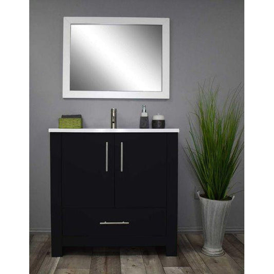Volpa USA Boston 36" x 20" Black Modern Freestanding Bathroom Vanity With Acrylic Top, Integrated Acrylic Sink And Brushed Nickel Handles