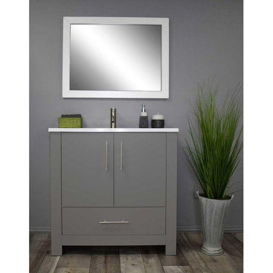 Volpa USA Boston 36" x 20" Gray Modern Freestanding Bathroom Vanity With Acrylic Top, Integrated Acrylic Sink And Brushed Nickel Handles