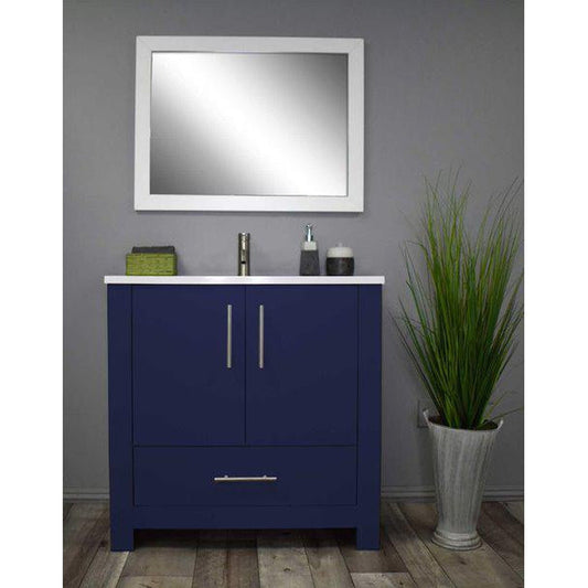 Volpa USA Boston 36" x 20" Navy Modern Freestanding Bathroom Vanity With Acrylic Top, Integrated Acrylic Sink And Brushed Nickel Handles