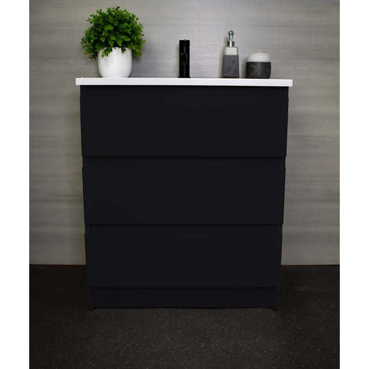 Volpa USA Pepper 30" x 20" Black Modern Freestanding Bathroom Vanity With Acrylic Top, Integrated Acrylic Sink and drawers