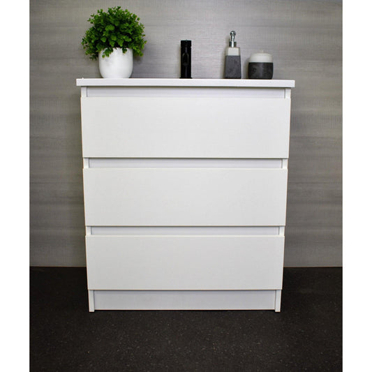 Volpa USA Pepper 30" x 20" White Modern Freestanding Bathroom Vanity With Acrylic Top, Integrated Acrylic Sink and drawers