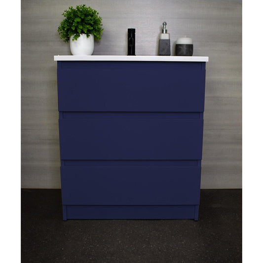 Volpa USA Pepper 30" x 20" Navy Modern Freestanding Bathroom Vanity With Acrylic Top, Integrated Acrylic Sink and drawers
