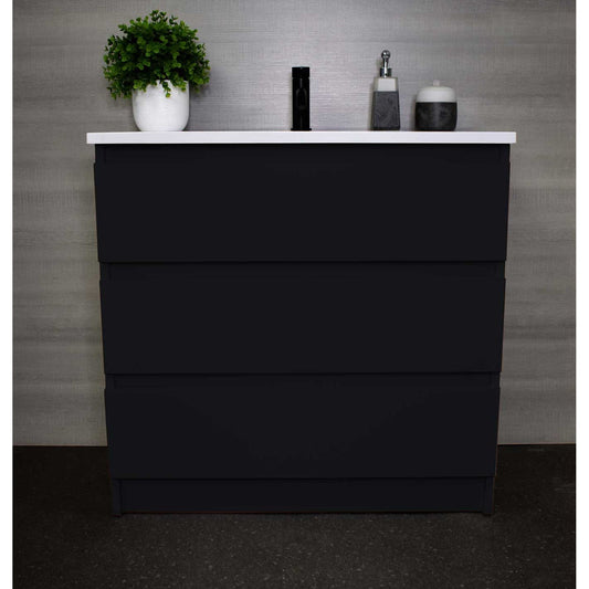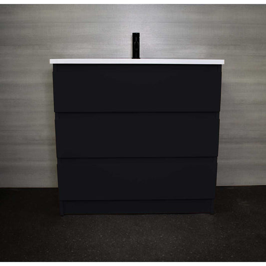 Volpa USA Pepper 36" x 20" Black Modern Freestanding Bathroom Vanity With Acrylic Top, Integrated Acrylic Sink and drawers