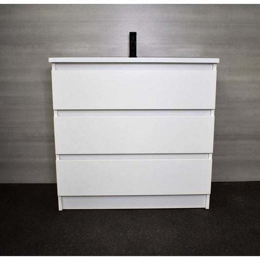Volpa USA Pepper 36" x 20" White Modern Freestanding Bathroom Vanity With Acrylic Top, Integrated Acrylic Sink and drawers