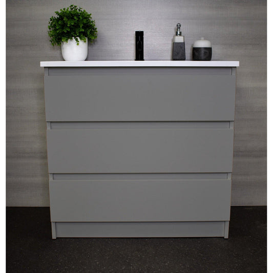 Volpa USA Pepper 36" x 20" Gray Modern Freestanding Bathroom Vanity With Acrylic Top, Integrated Acrylic Sink and drawers